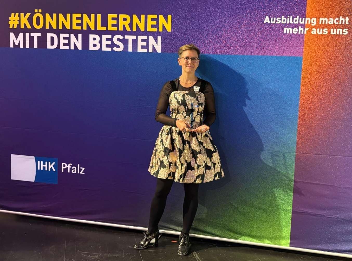 Die Hübsch-Schule strahlt bis in die Pfalz: Im November 2025 wurde dort unserer Auszubildenden Eva der Jahrgangsbestenpreis feierlich überreicht.